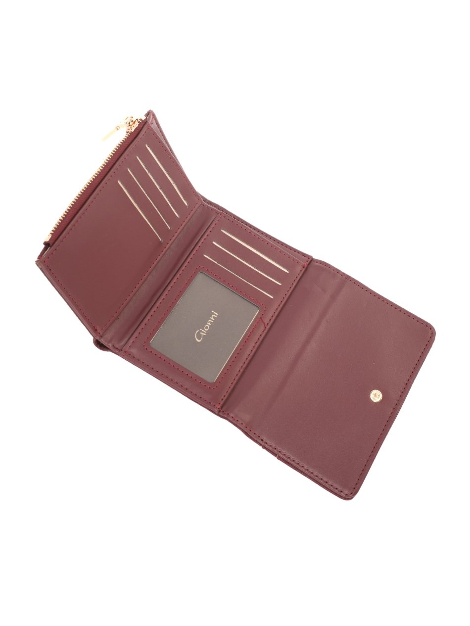 Small dark red wallets with textured finish, snap closure, multiple card slots, and clear ID window. Stylish and practical purses for everyday use.