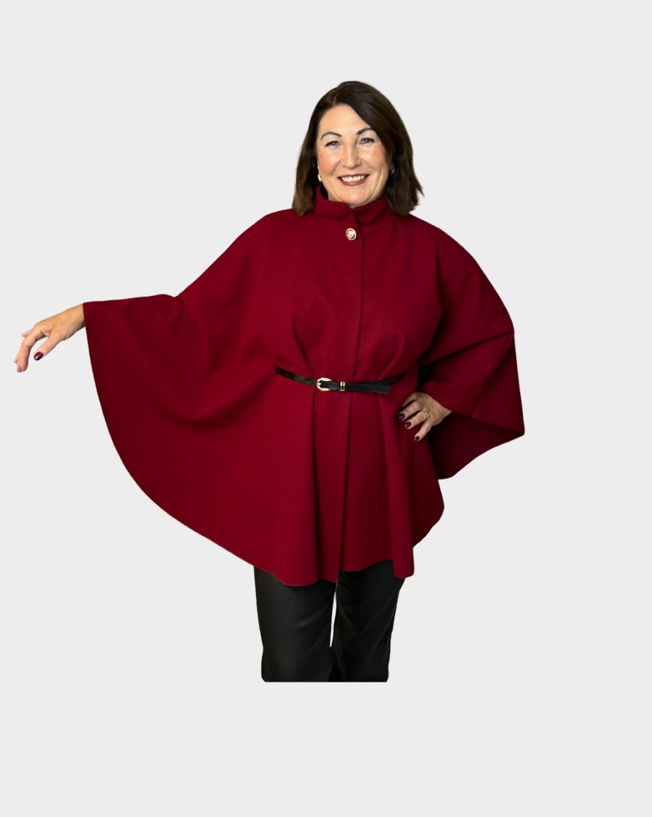 Belted Cape Coat One Size Fits 6 to 14 Wine CAPE-WIN-1