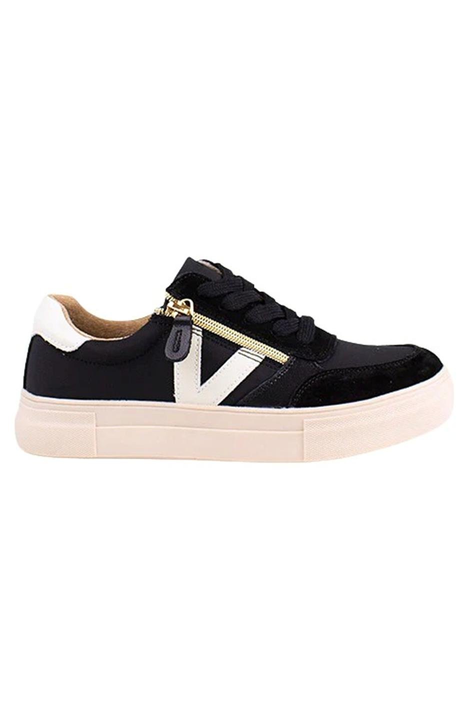 A casual trainer with smooth panels, chunky sole and gold zip detail. Comfortable, easy to wear and effortlessly stylish for everyday outfits.