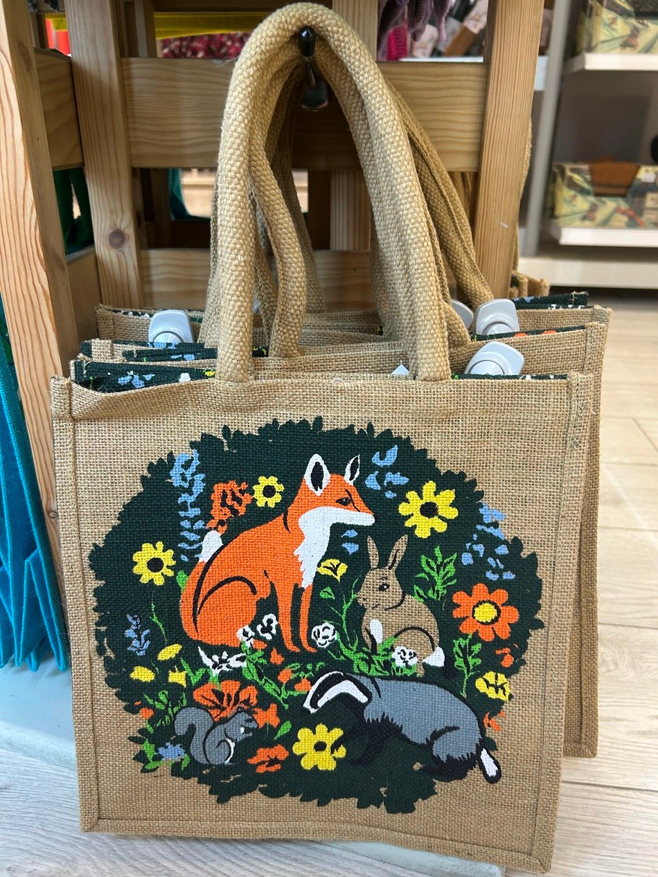 Eco friendly jute bags with charming designs, strong handles, and natural texture. Perfect reusable 1ft * 1 ft bags for stylish, sustainable everyday shopping.