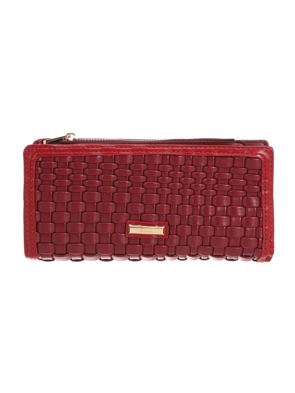 Textured cherry wallets with woven effect, zip compartment, and organized card slots. Classic look with practical function. Stylish and practical purses for everyday use.