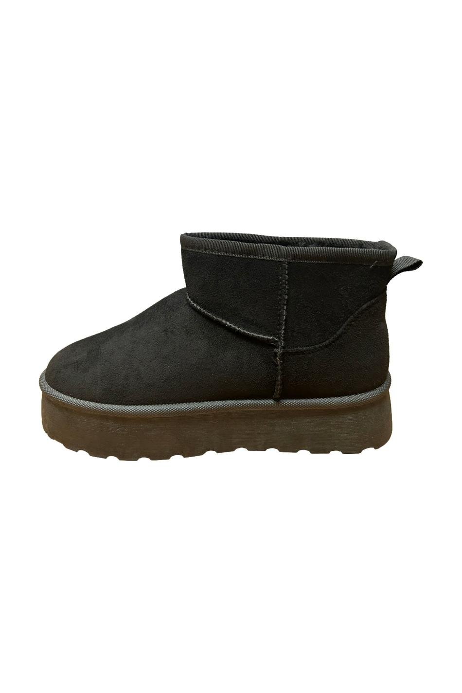 Soft, plush-lined ankle boot, in classic black. Designed for warmth and comfort, they bring cozy touch to cold-weather outfits.