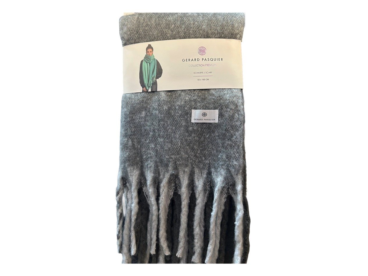 Fluffy knit scarves with long fringes and a soft feel, ideal for keeping warm and adding simple texture to winter outfits.