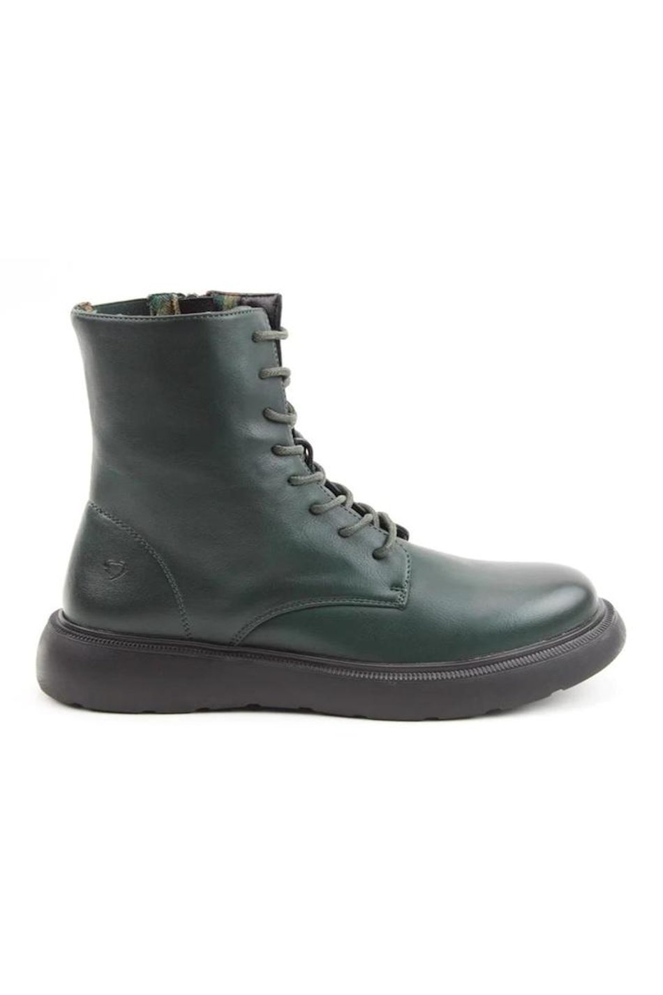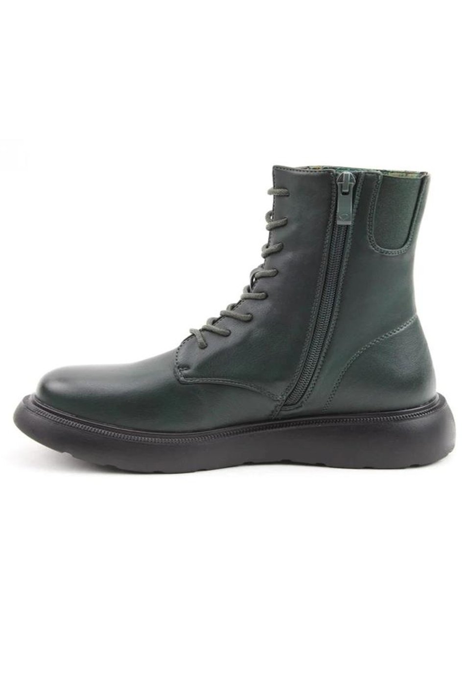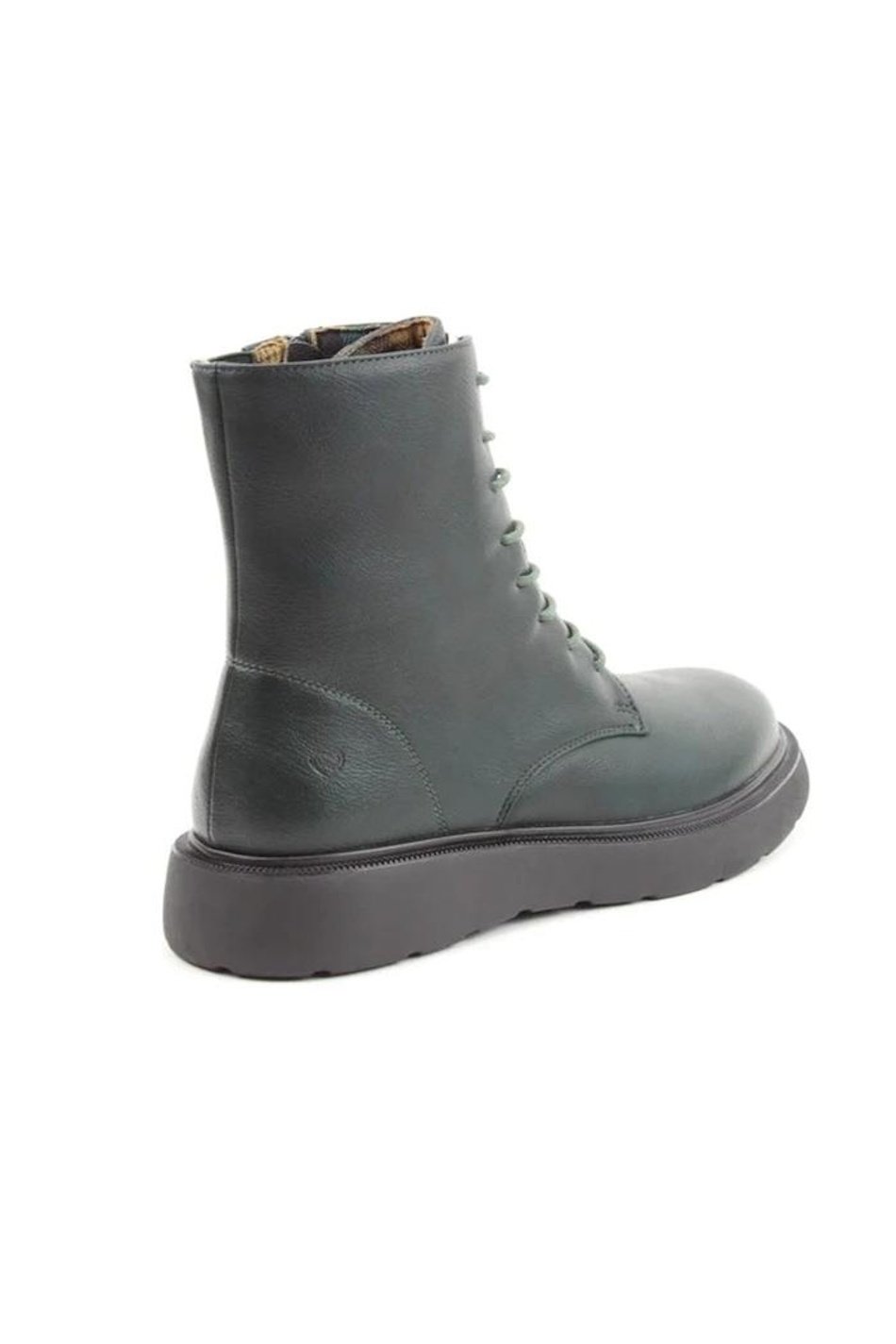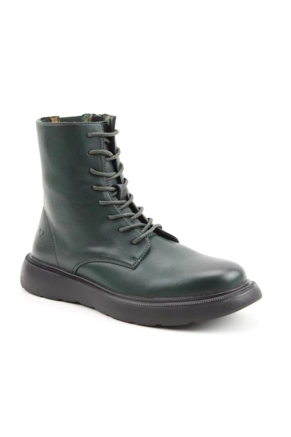 Litesoles, Memory Foam Boots. Forest green lace-up ankle boot with sturdy sole and sleek silhouette. A stylish twist on a classic design.