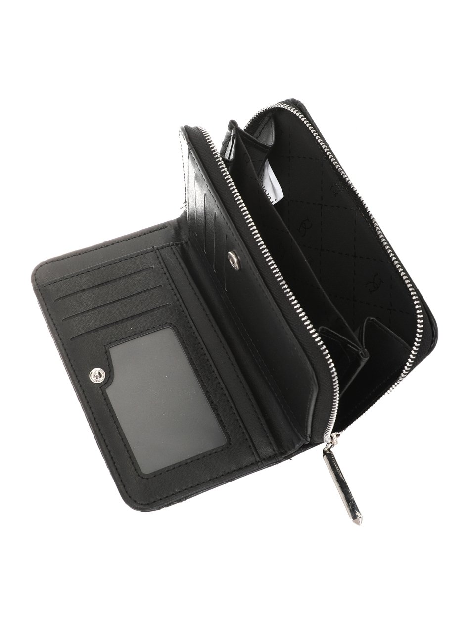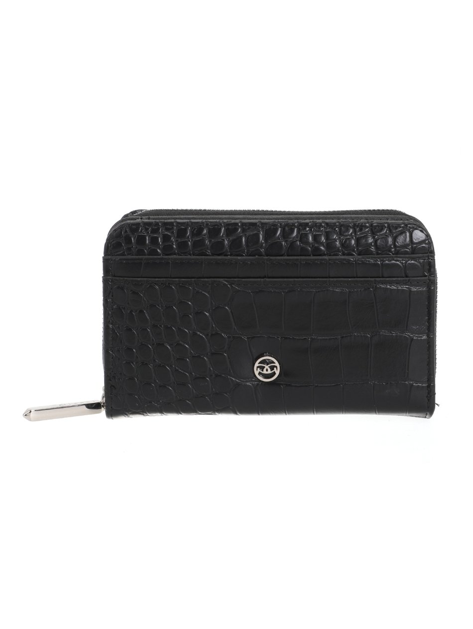 Compact black wallets with croc effect finish, zip closure, card slots, and coin pocket. Stylish and practical purses for everyday use.
