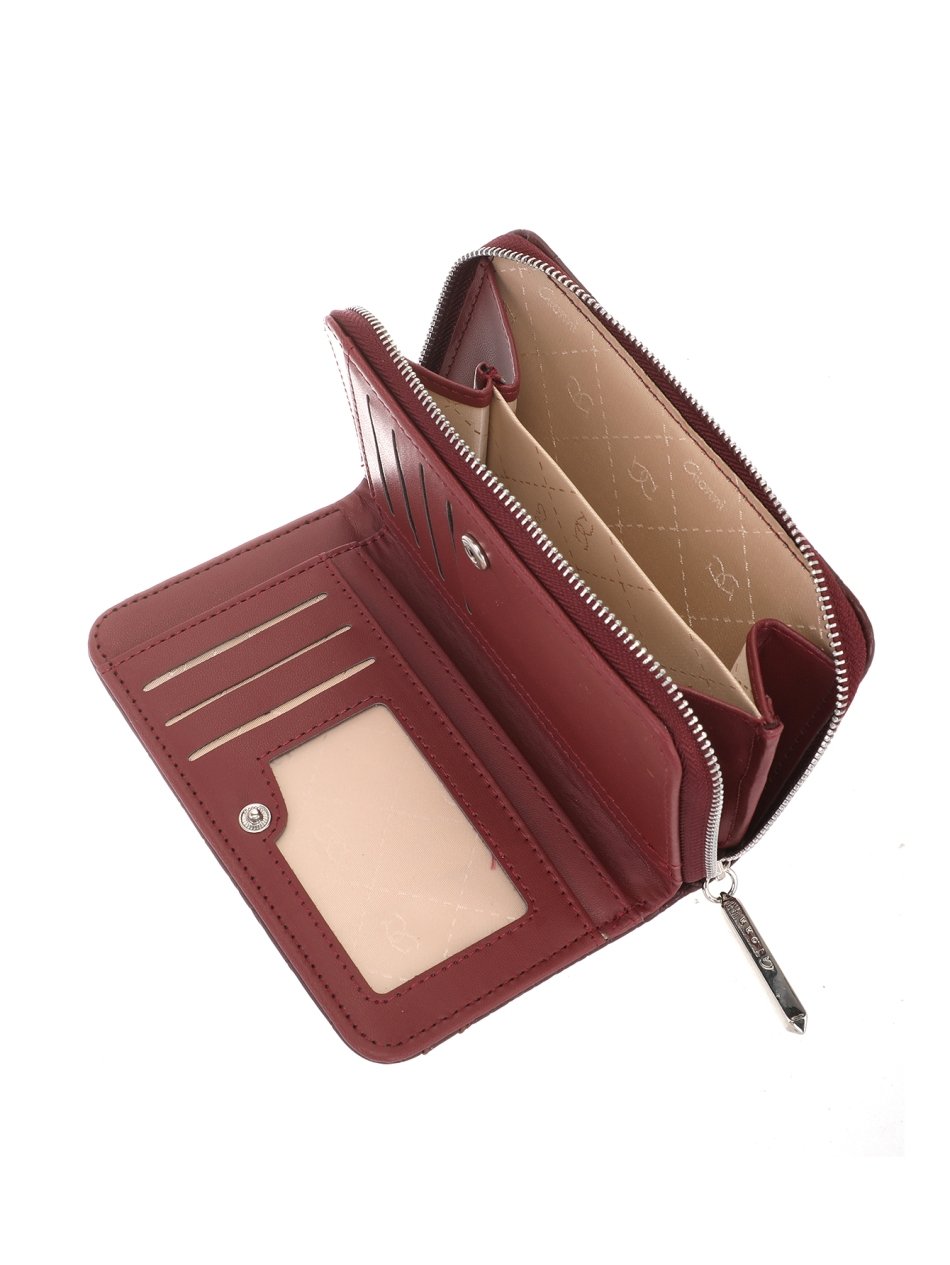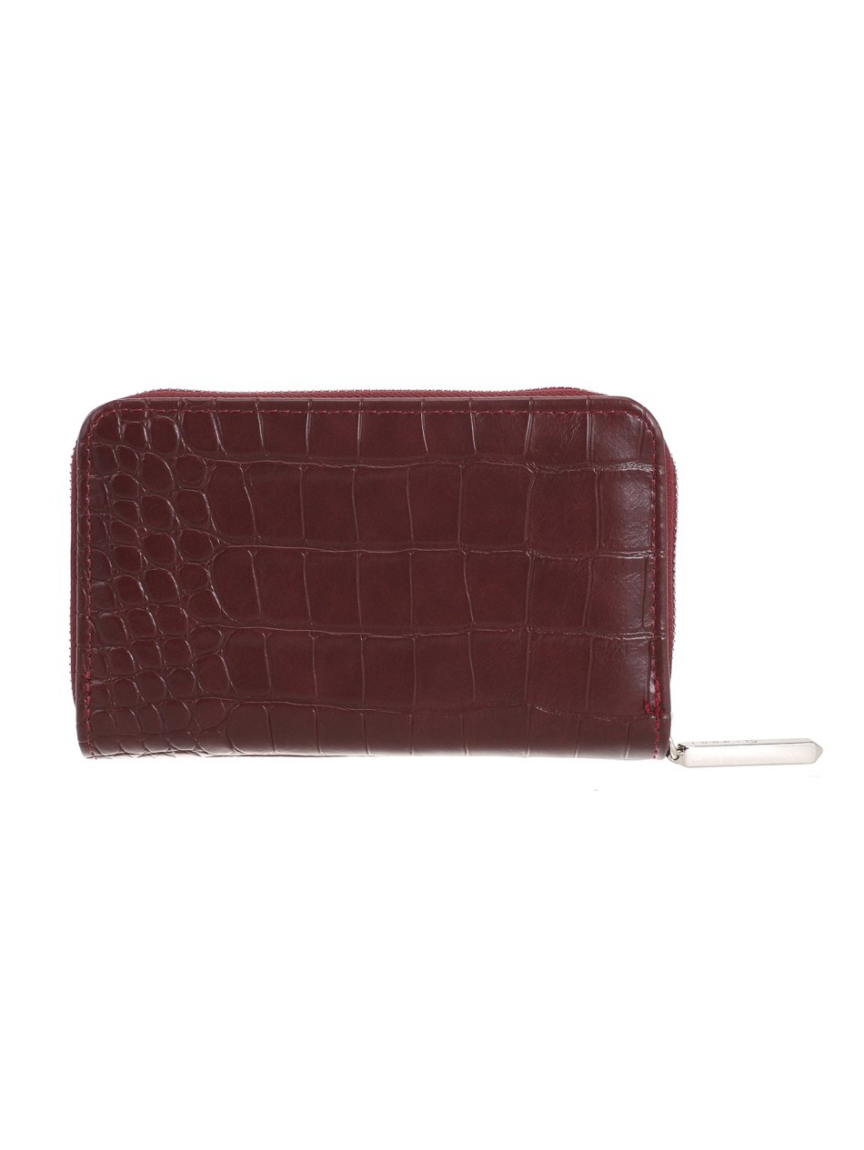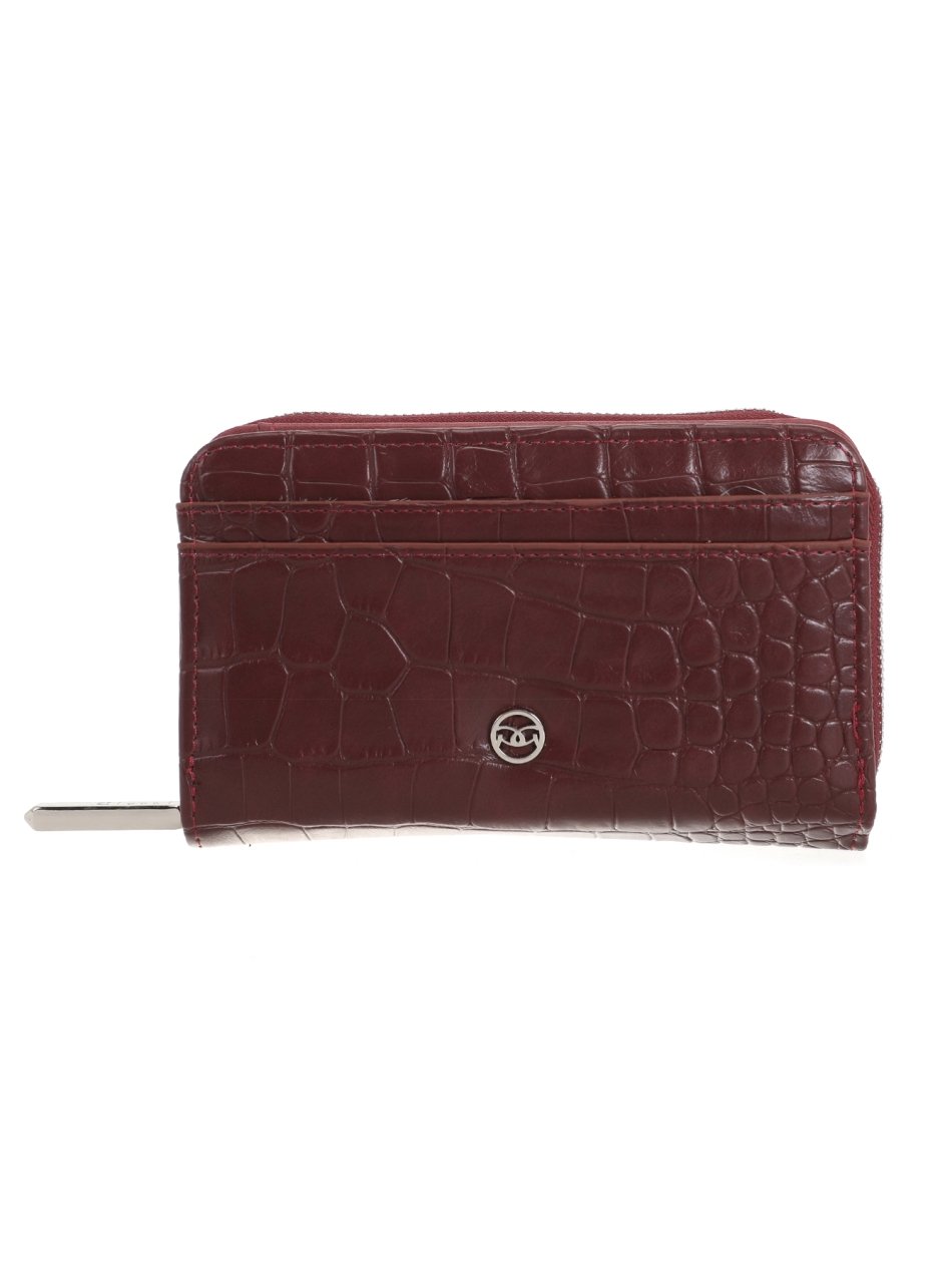 Compact cherry wallets with croc effect finish, zip closure, card slots, and coin pocket. Stylish and practical purses for everyday use.