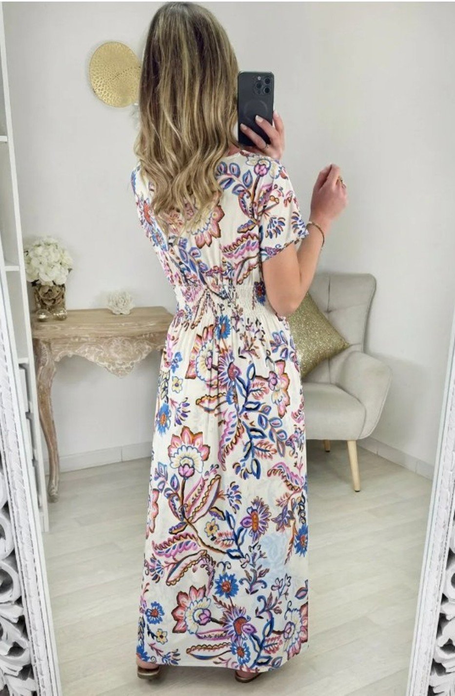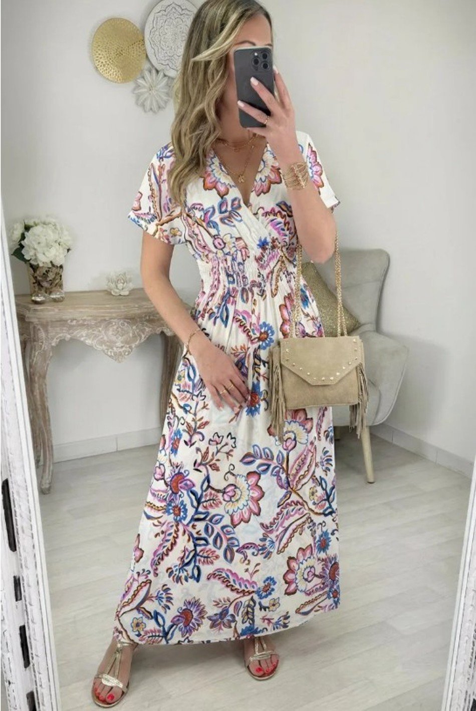 V-neck maxi magic dress with a ruched waist. These long magic dresses are lightweight. These summer dresses are perfect for holidays and don’t need ironing.