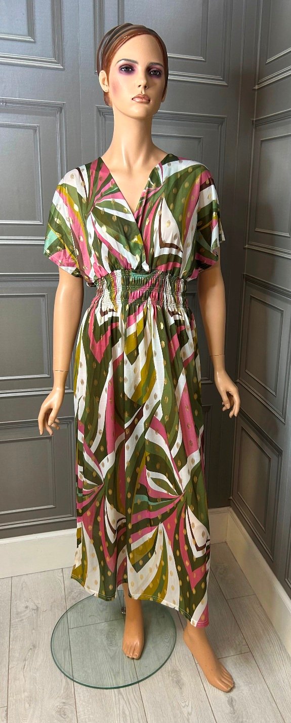 V-neck maxi magic dress with a ruched waist. These long magic dresses are lightweight. These summer dresses are perfect for holidays and don’t need ironing.