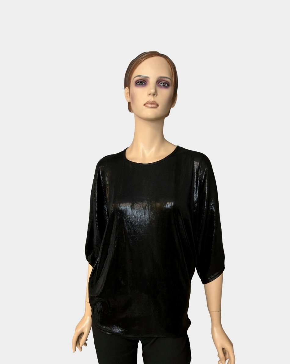 Soft batwing top with a radiant sheen and fluid drape. Effortlessly stylish with a comfortable fit, ideal for pairing with sleek trousers or skirts.