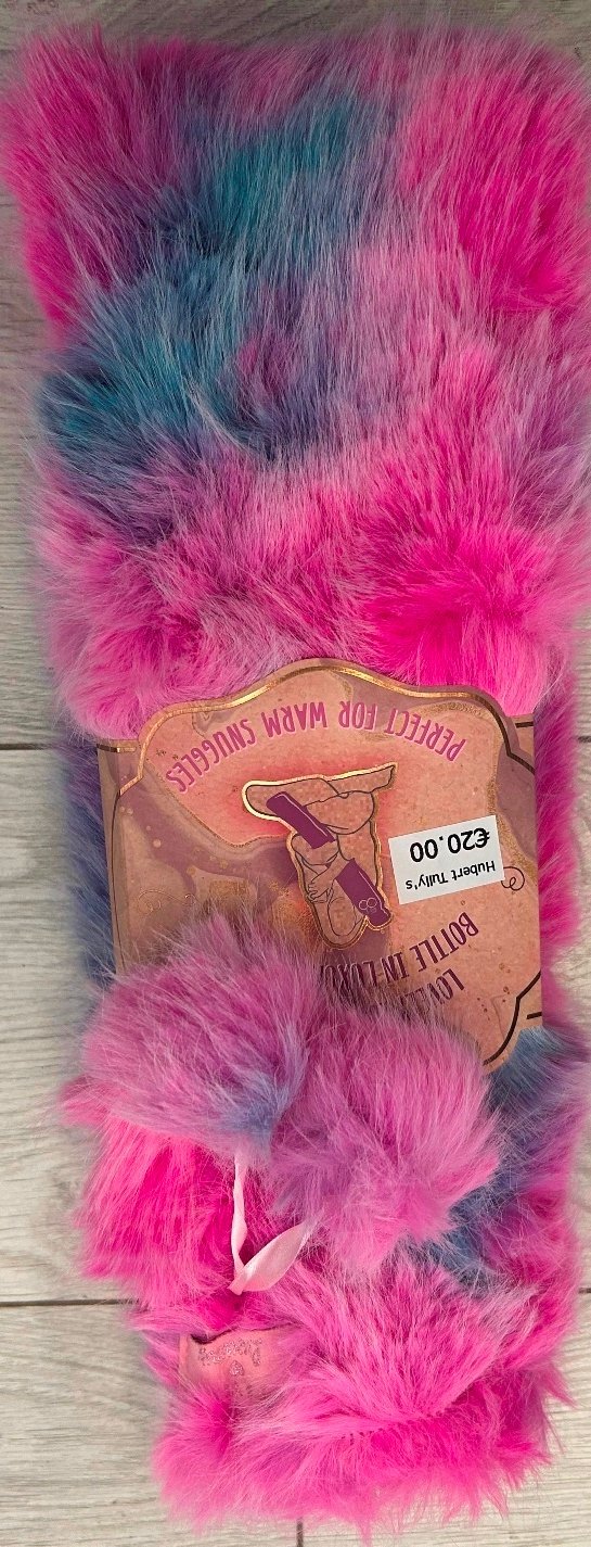 Lovely long hot water bottles wrapped in plush covers for warm snuggles.