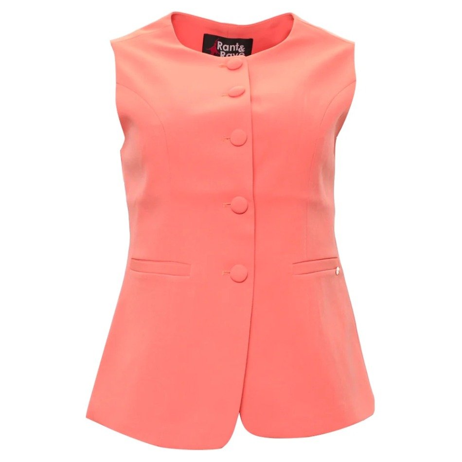 A stylish waistcoat in a soft coral colour. These fitted waist coats are perfect for special occasions like communion, confirmation, wedding.