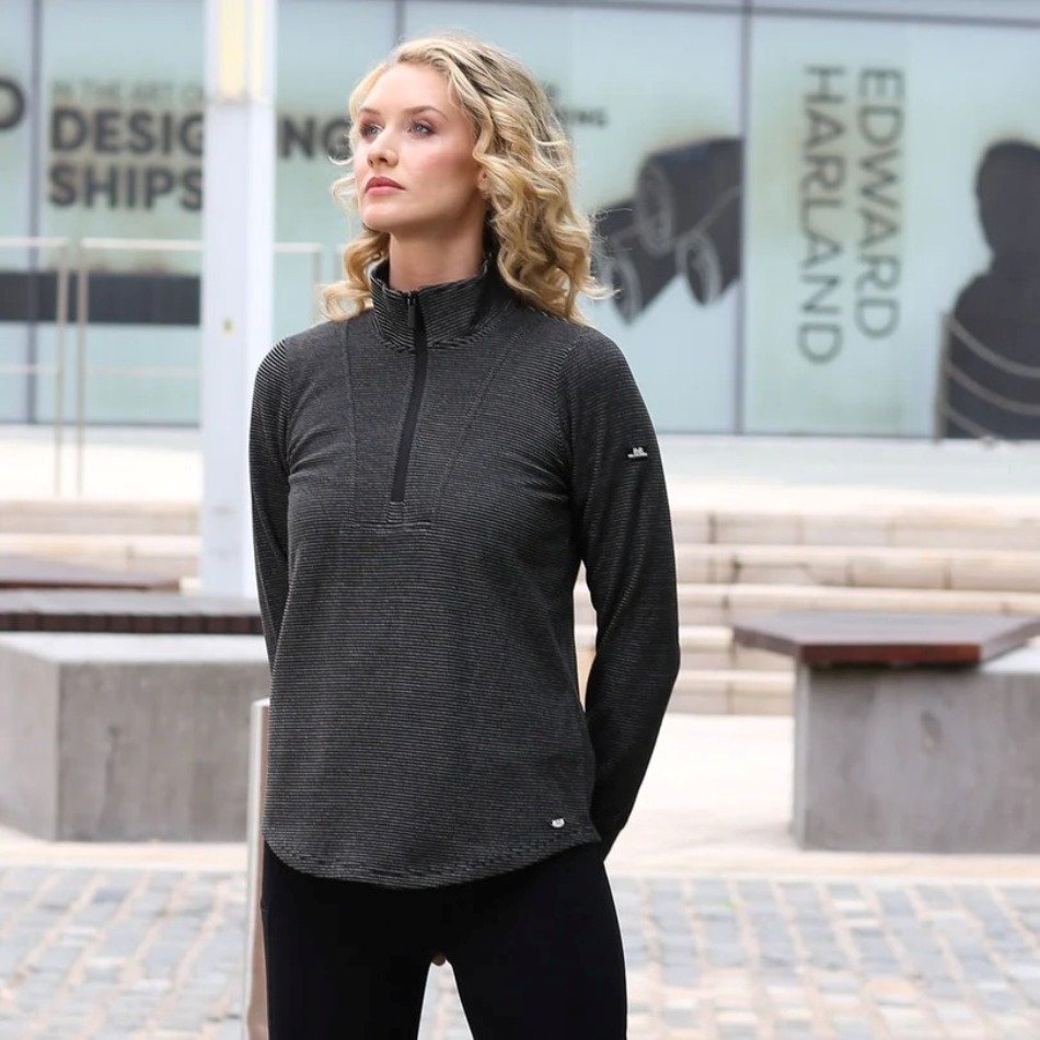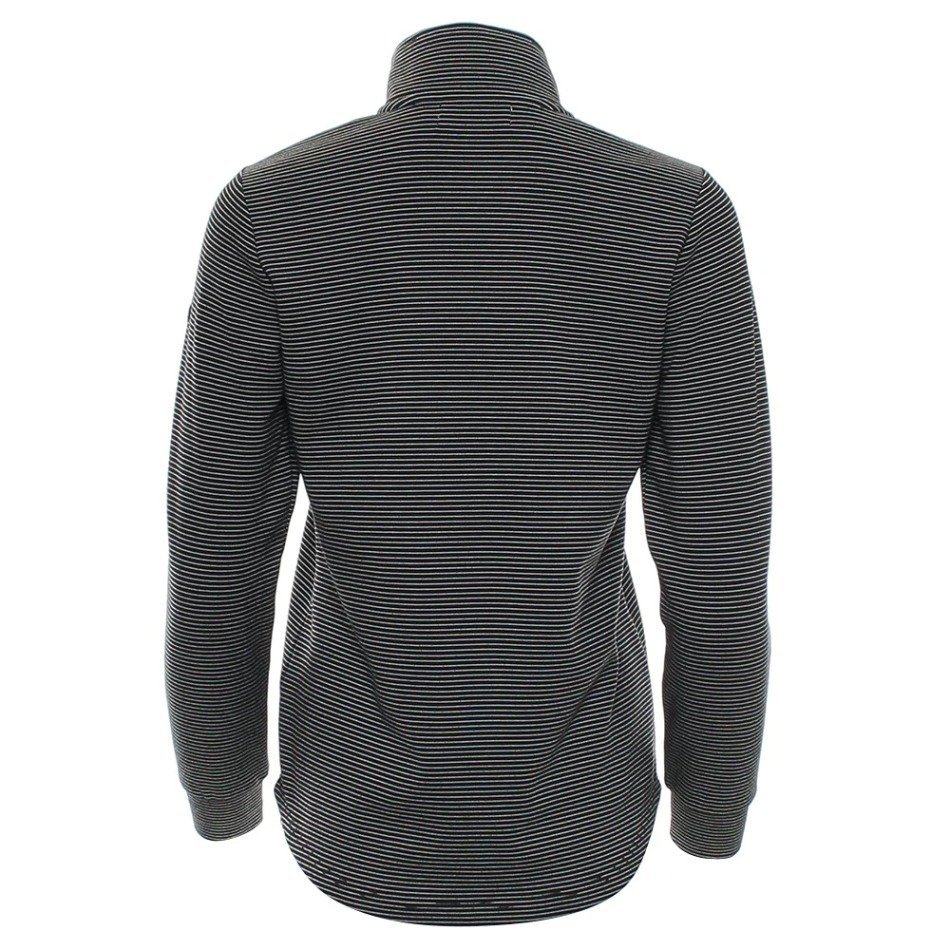 Half-zip top with subtle stripe texture and stand collar, offering comfort and a sleek everyday look.