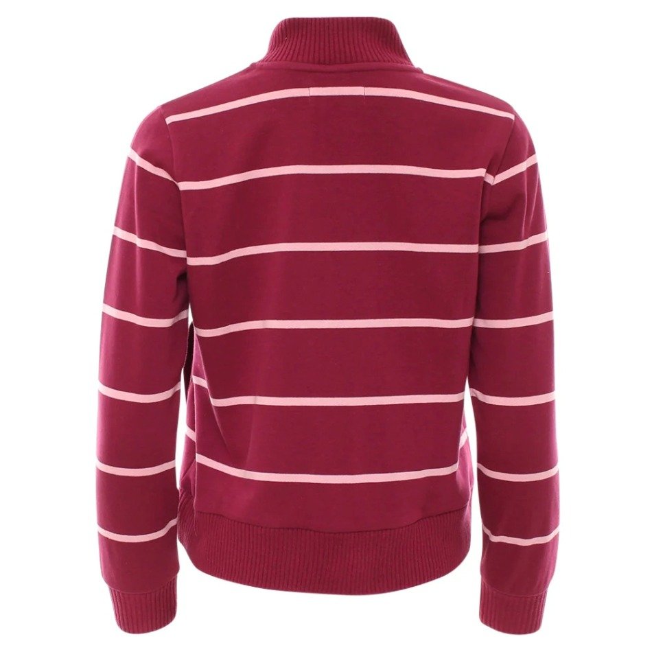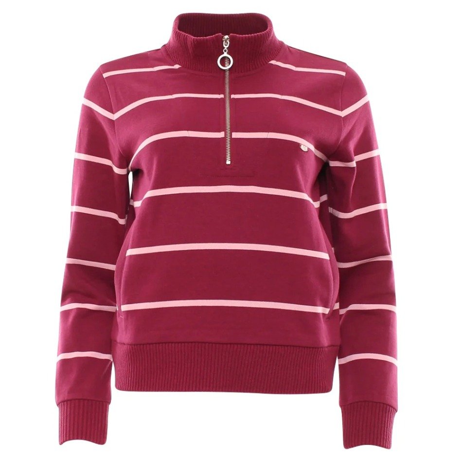 Striped half-zip top with ribbed cuffs and hem, blending sporty charm with everyday comfort.