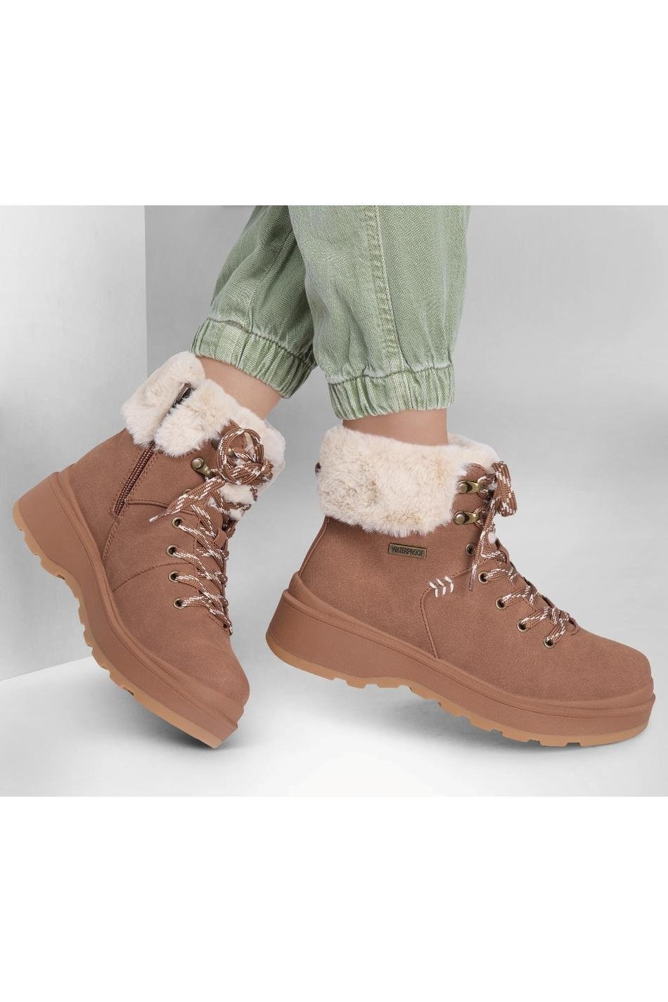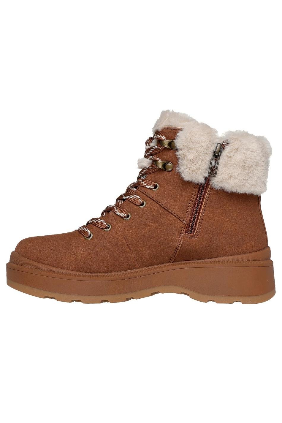 Stay warm and cozy in Skechers Park City, a stylish lace-up hiker boot with a synthetic suede upper, faux-fur trim and lining, Memory Foam insole, and anti-slip traction outsole.