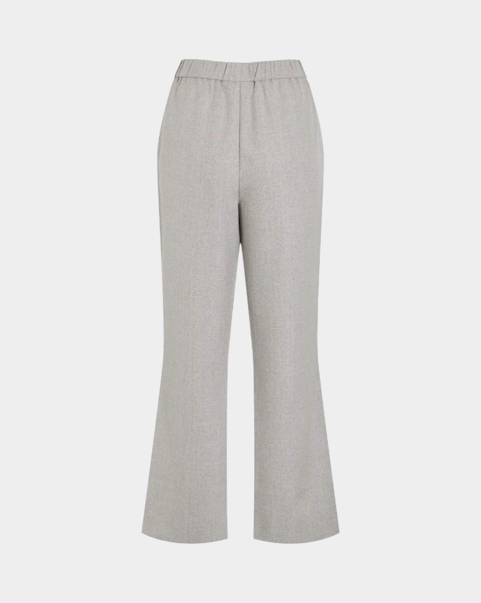 High waist light grey trousers with straight leg cut. Refined style pairs perfectly with blazers for a coordinated look.