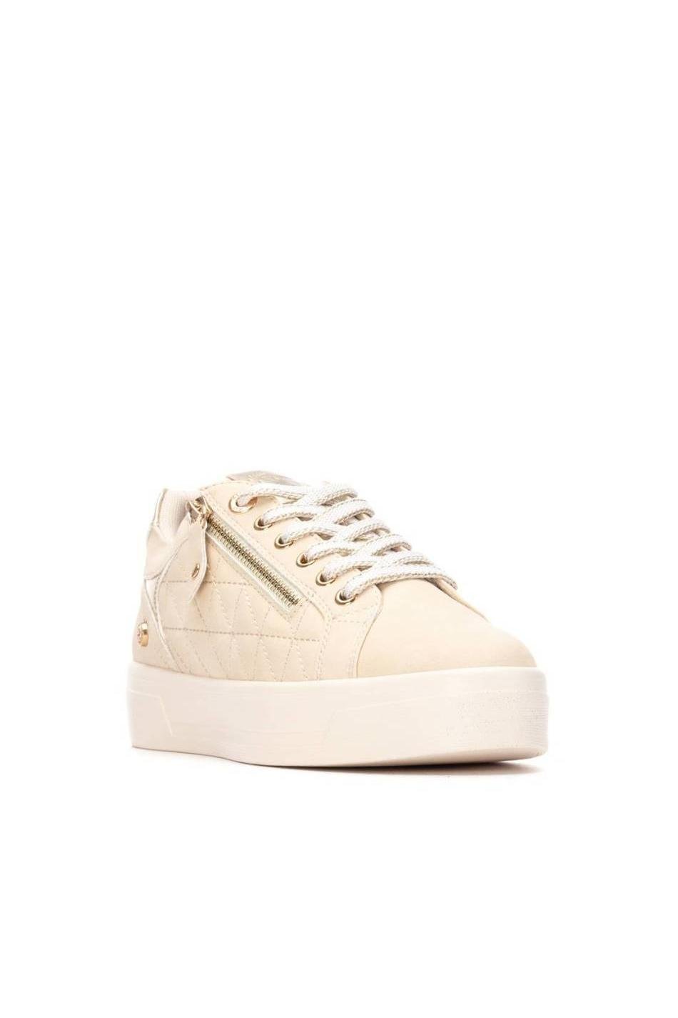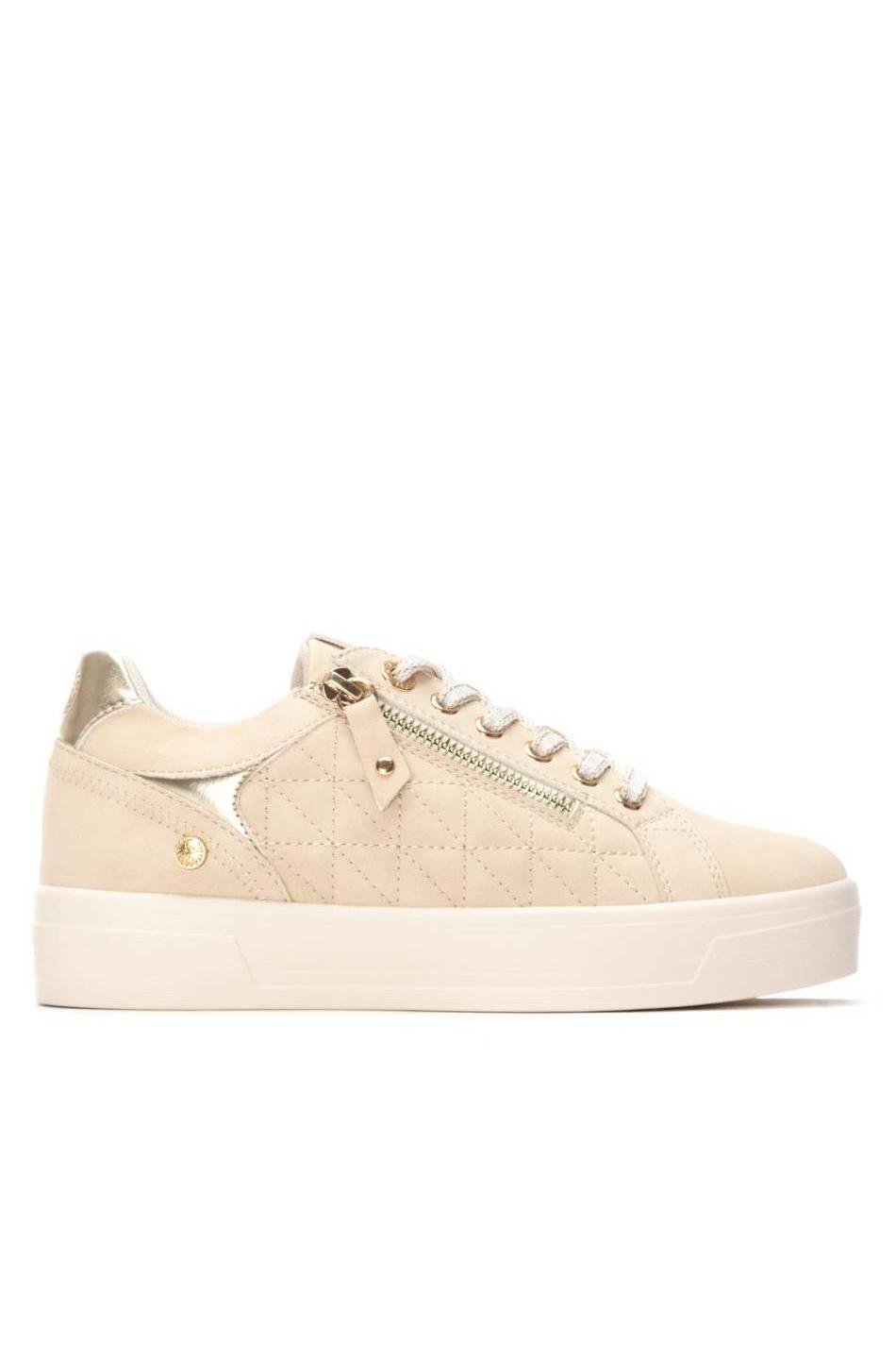 Subtle quilted stitching meets soft gold highlights in this creamy low-top sneaker.side zip addsdash of elegance to everyday comfort.