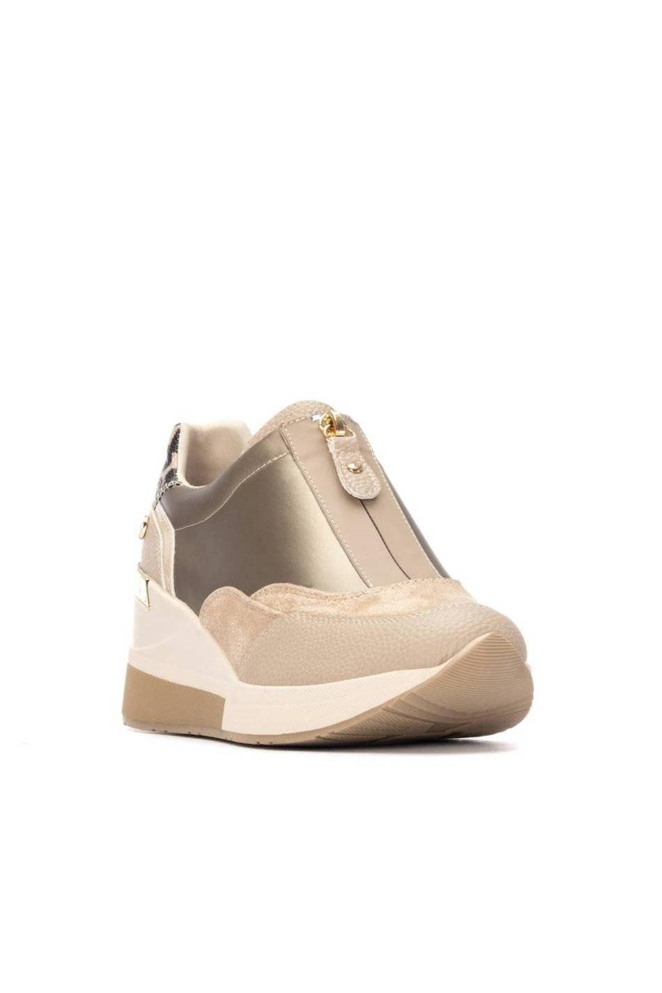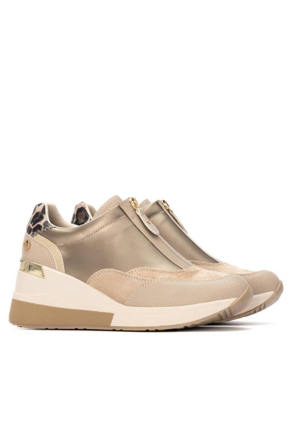 Sleek gold-beige panels meet leopard , flair in this elegant slip-on wedge.golden zip adds glam to your on-the-go days.