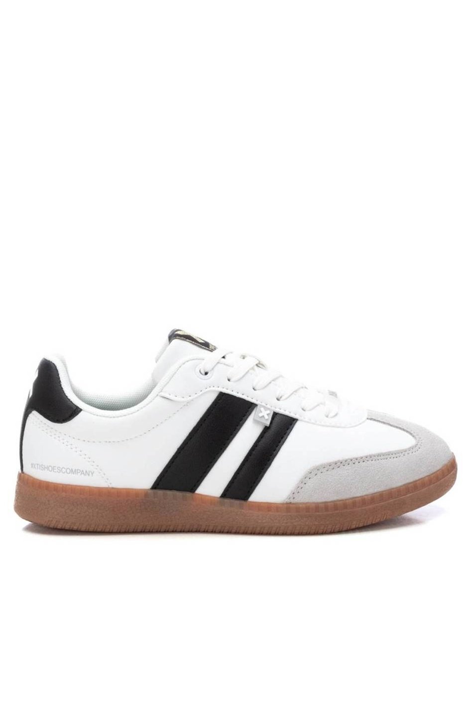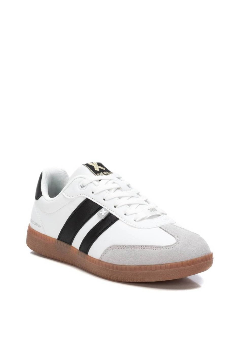 Samba style white XTI trainers with black stripes and gum sole. These adidas style runners are designed for steady movement.