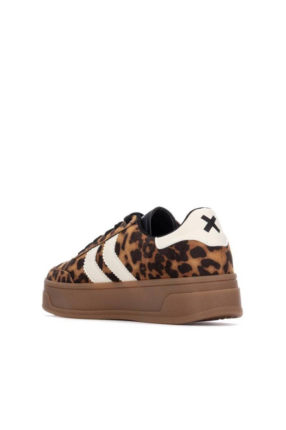 Leopard print platform sneaker with bold cream stripes and a gum sole. A street-smart statement piece with serious retro-sporty energy.