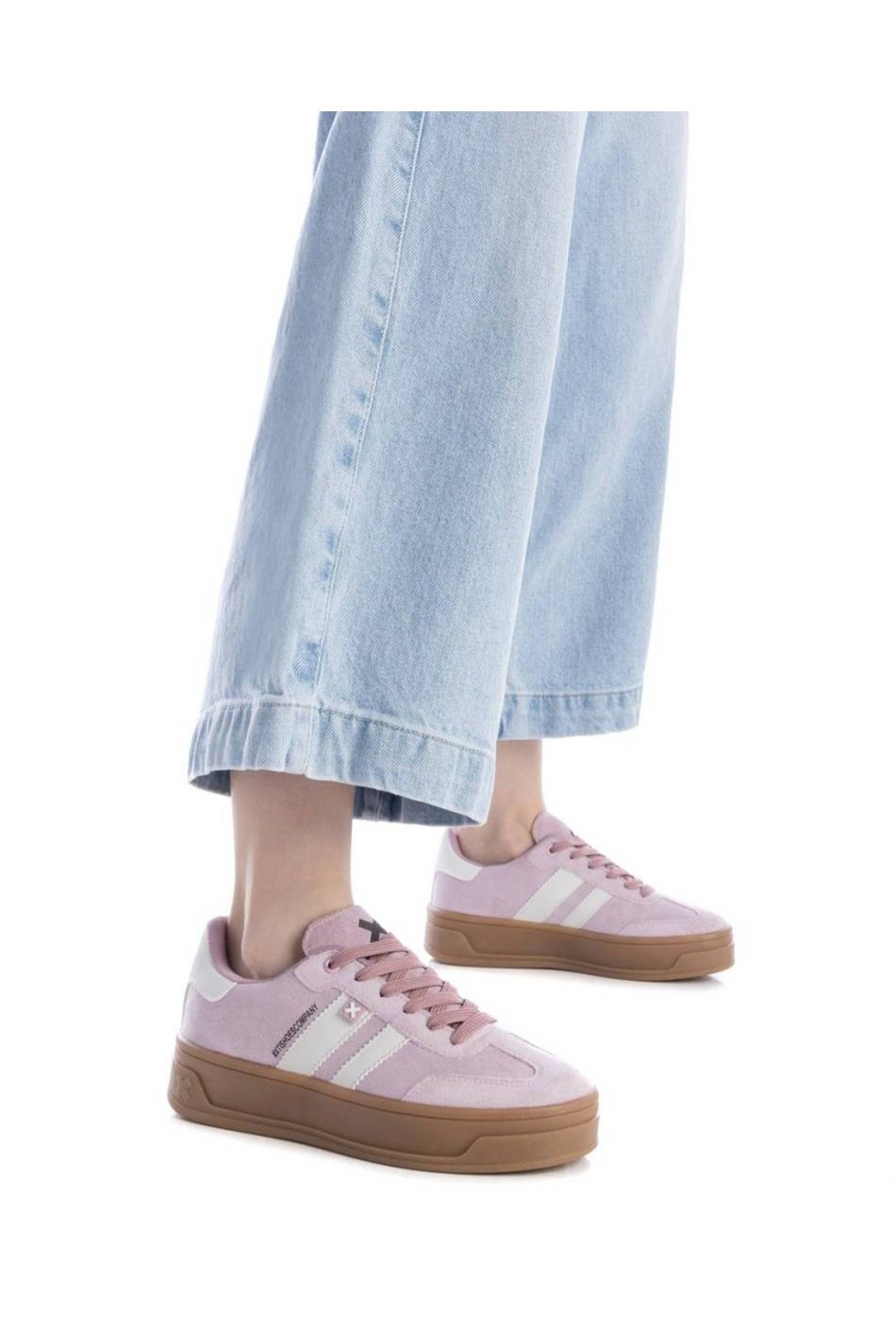 Adidas style baby pink XTI platform trainers with chunky sole. Double sole provides lifted style. Gum sole ensures steady footing.
